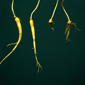 Healthy ginseng seedlings (left) and those affected by MSD (right).