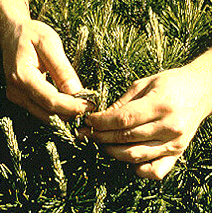 Pinching of candles on pine.