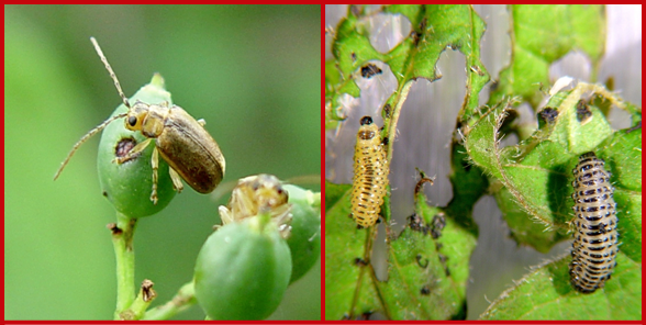 ViburnumLeafBeatles April 14, 2020 588 × 296 ViburnumLeafBeatles Viburnum leaf beetles adults (left) and larvae (right). (Photos courtesy of Paul Weston, Cornell University, Bugwood.org)